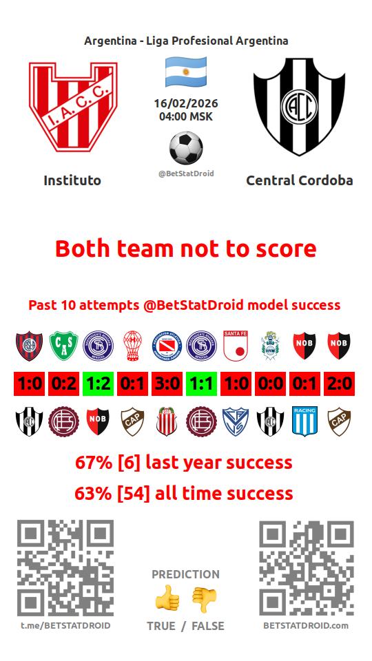 ✔ Instituto scores under 2,5 goals in each of 12 last games