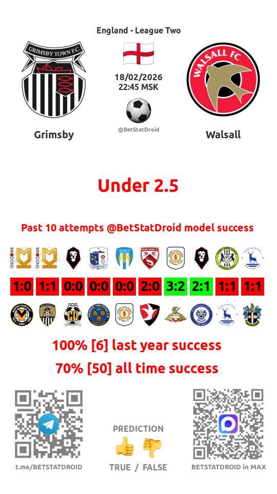 ✔ Grimsby lost under 2,5 goals in each of 16 last games