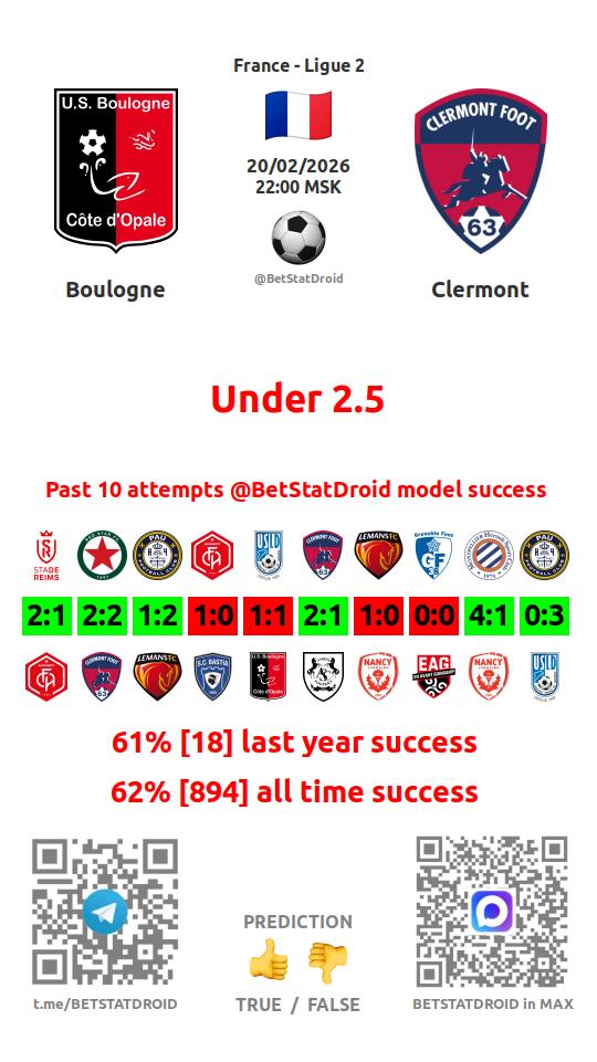 ✔ Boulogne scores under 2,5 goals in each of 8 last games