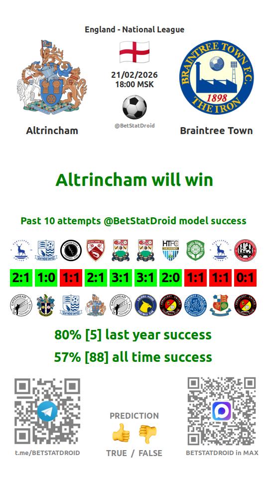 ✔ Braintree Town scores under 1,5 goals in each of 10 last games