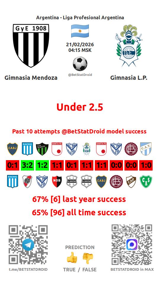 ✔ Gimnasia Mendoza scores under 1,5 goals in each of 6 last games