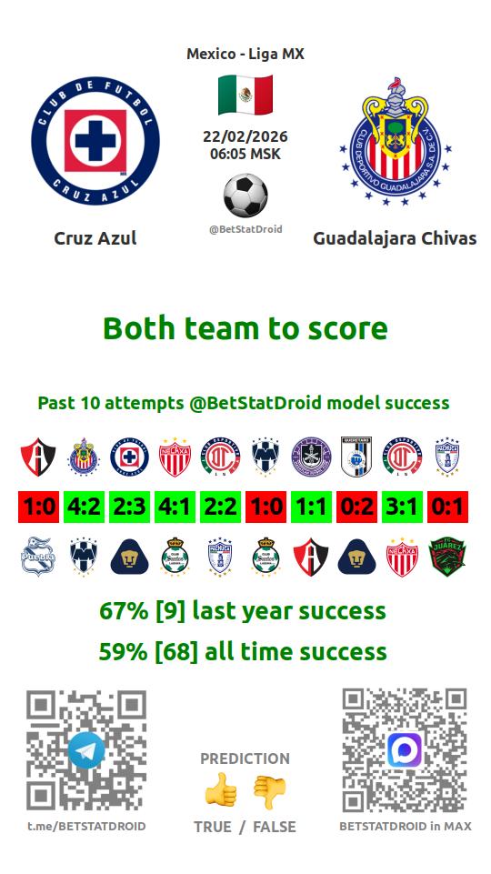 ✔ Cruz Azul lost under 1,5 goals in each of 5 last games