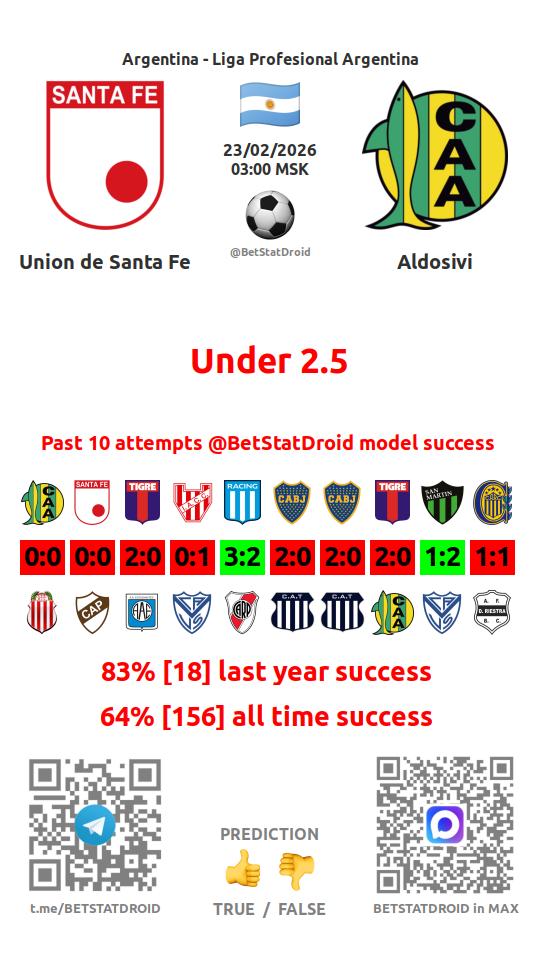 ✔ Union de Santa Fe lost under 2,5 goals in each of 22 last games