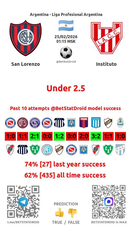 ✔ Instituto scores under 2,5 goals in each of 26 last games