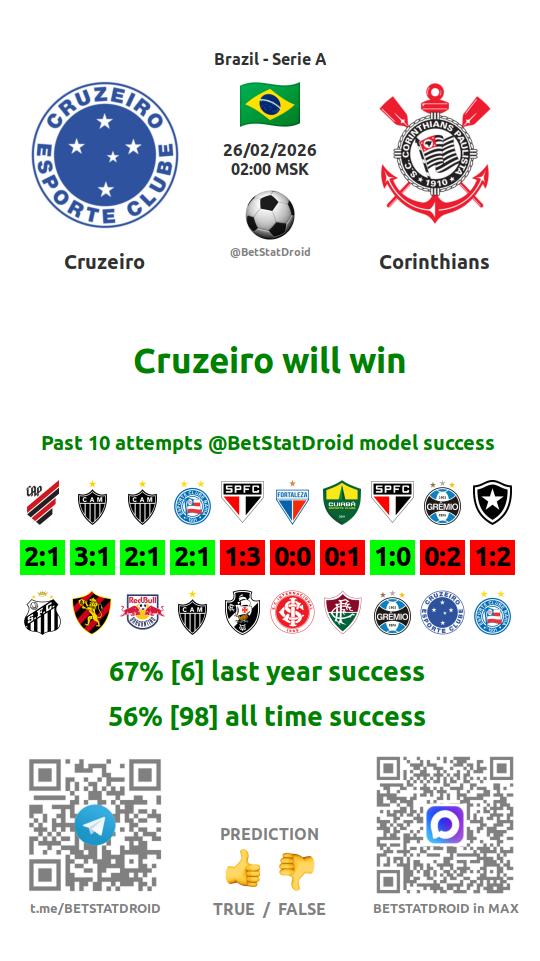 ✔ Cruzeiro lost under 2,5 goals in each of 69 last games