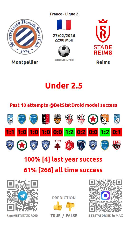 ✔ Reims lost under 2,5 goals in each of 15 last games