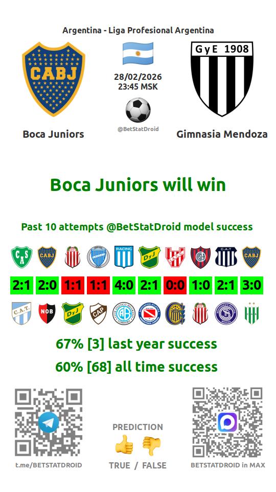 ✔ Boca Juniors lost under 2,5 goals in each of 64 last games
