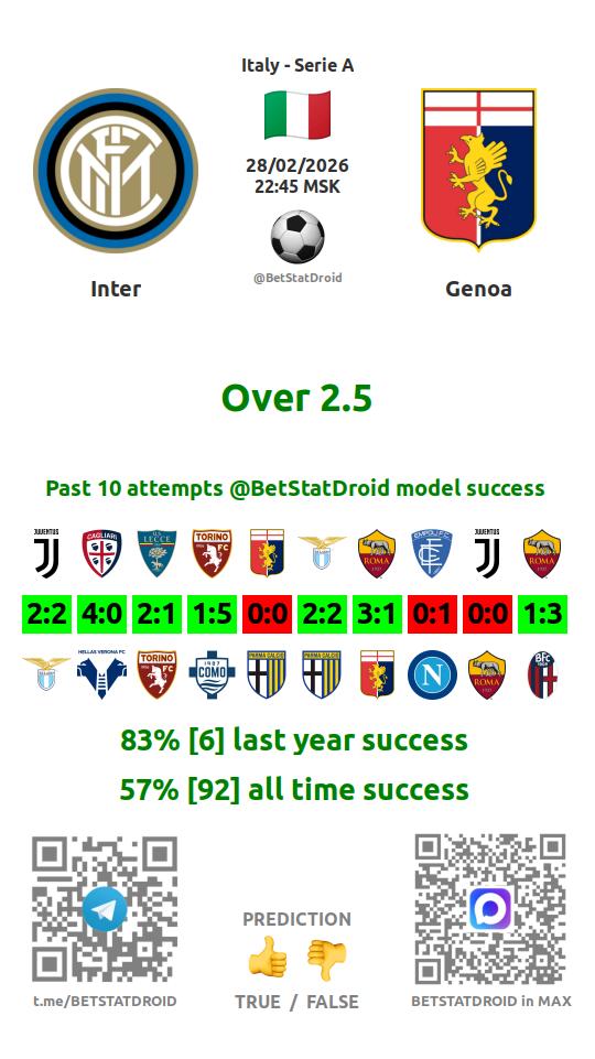 ✔ Inter lost under 2,5 goals in each of 27 last games
