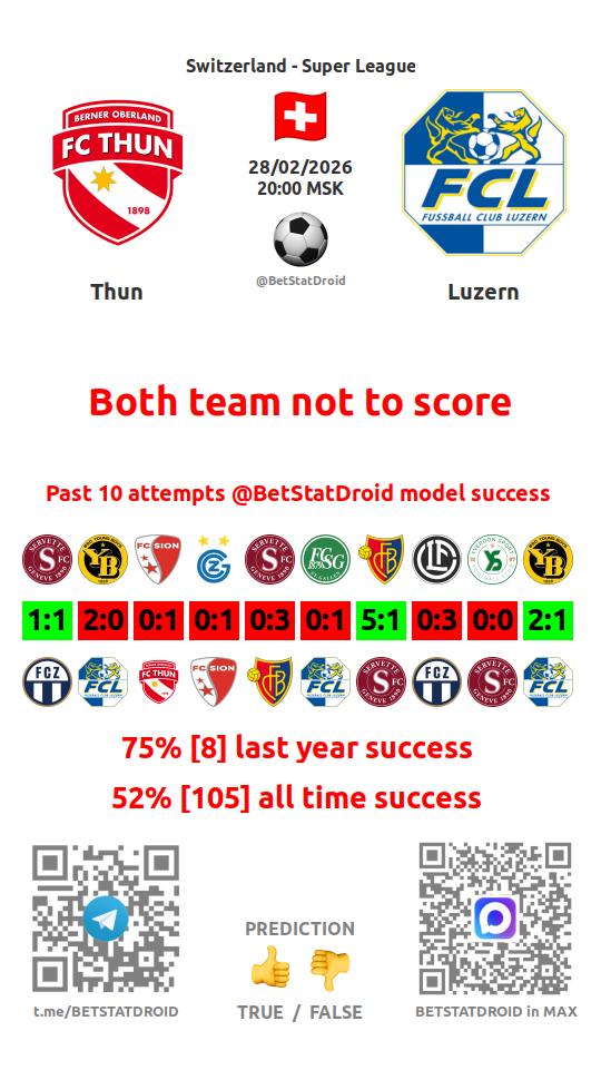 ✔ Thun lost under 1,5 goals in each of 7 last games