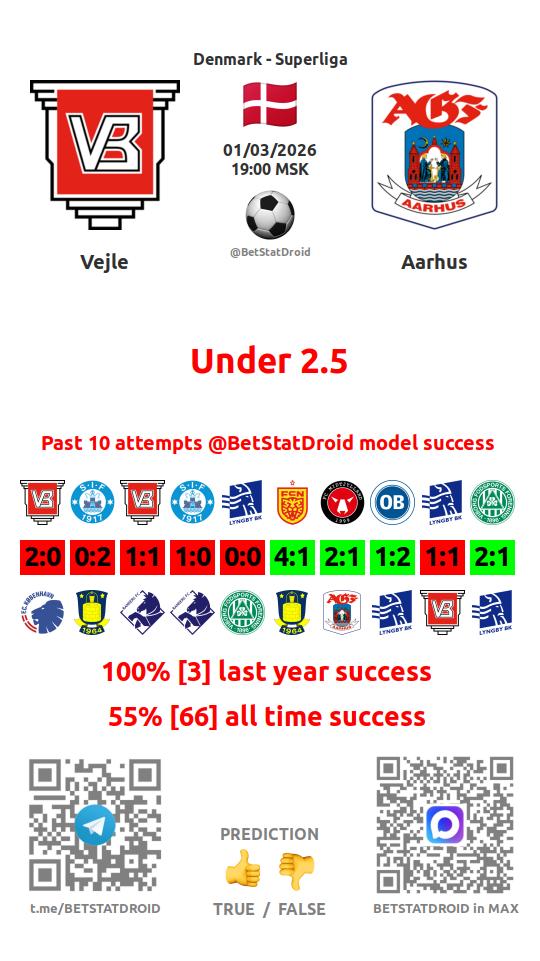 ✔ Vejle scores under 2,5 goals in each of 8 last games