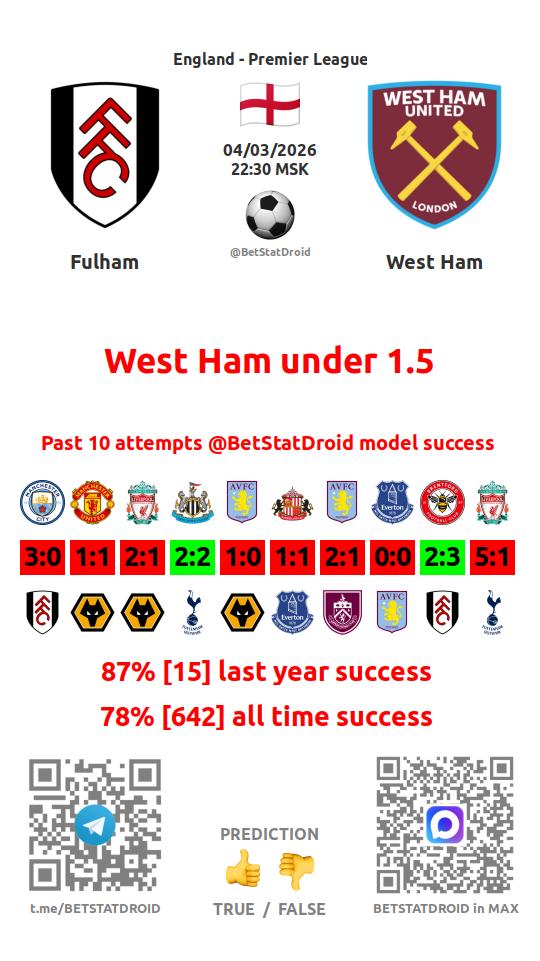 ✔ West Ham scores under 2,5 goals in each of 12 last games