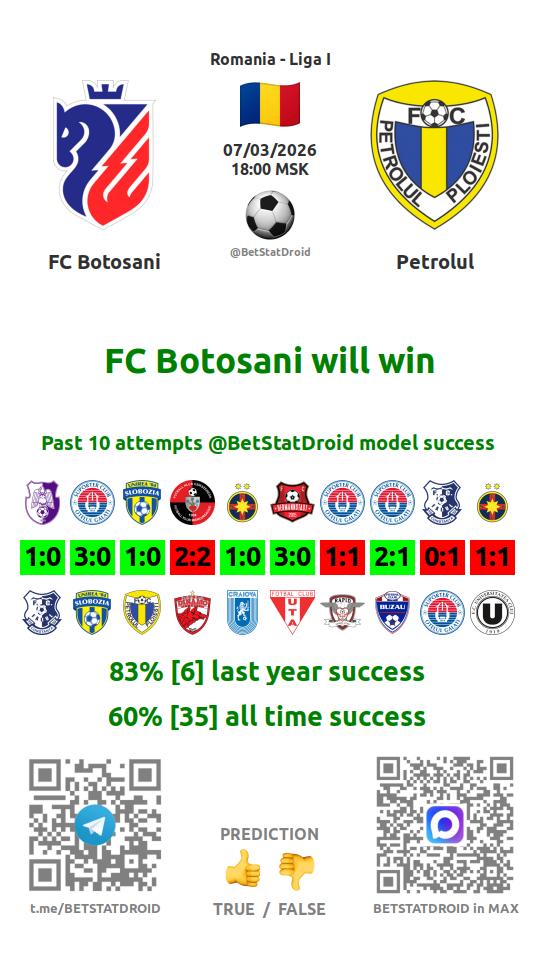 ✔ FC Botosani scores under 2,5 goals in each of 8 last games