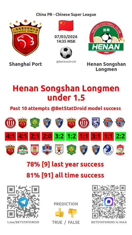 ✔ Henan Songshan Longmen lost under 2,5 goals in each of 9 last games