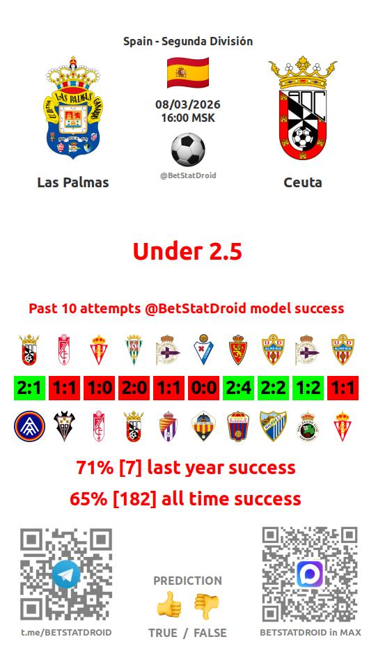 ✔ Las Palmas lost under 2,5 goals in each of 40 last games