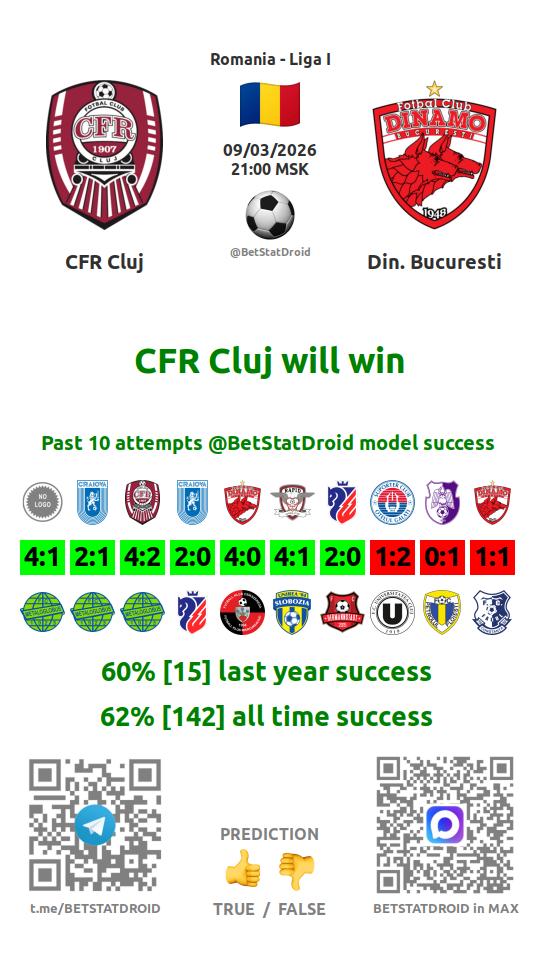✔ CFR Cluj lost under 2,5 goals in each of 11 last games