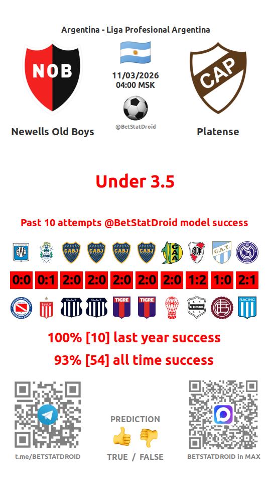 ✔ Platense lost under 2,5 goals in each of 9 last games