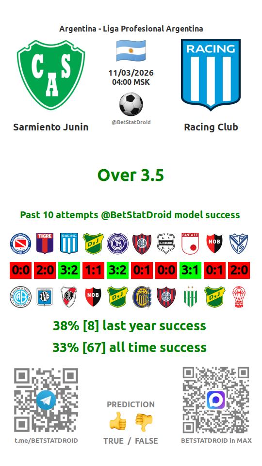 ✔ Sarmiento Junin scores under 2,5 goals in each of 36 last games