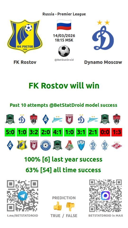 ✔ FK Rostov scores under 2,5 goals in each of 15 last games