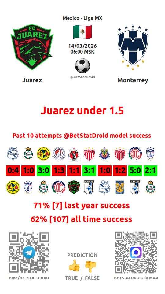 ✔ Juarez scores under 2,5 goals in each of 8 last games