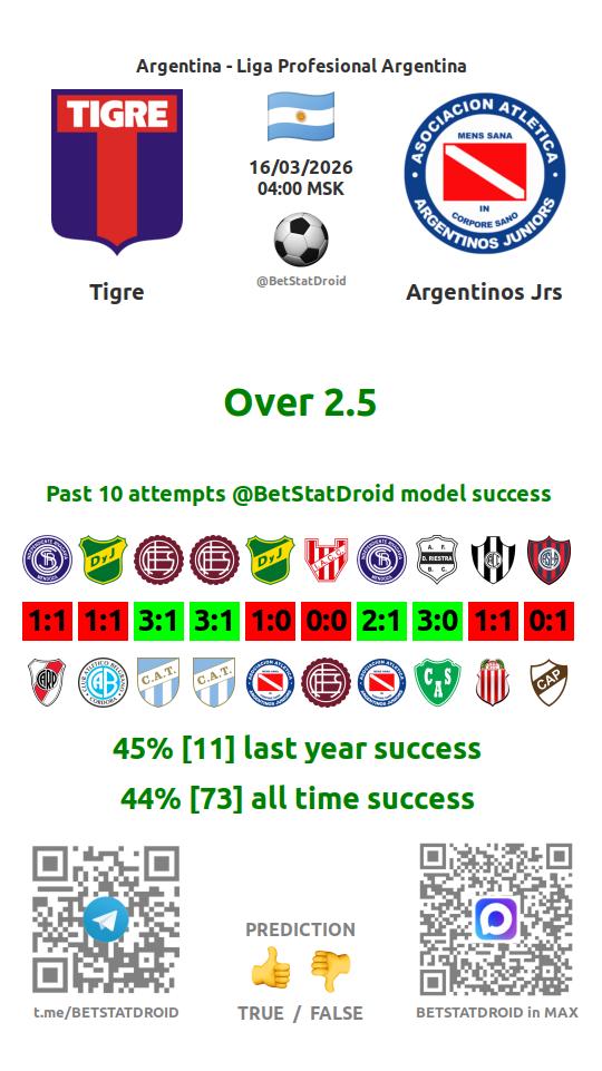 ✔ Tigre lost under 2,5 goals in each of 51 last games