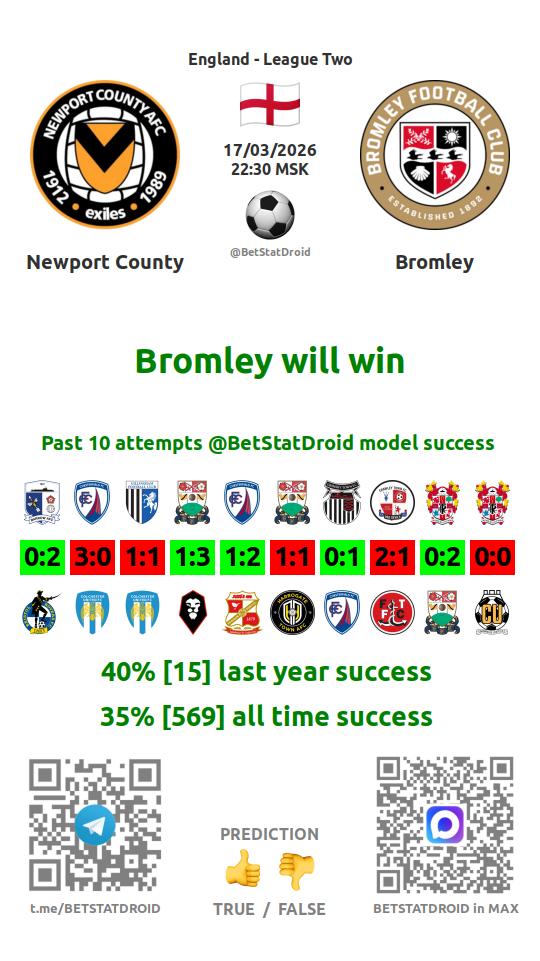 ✔ Bromley scores under 2,5 goals in each of 8 last games