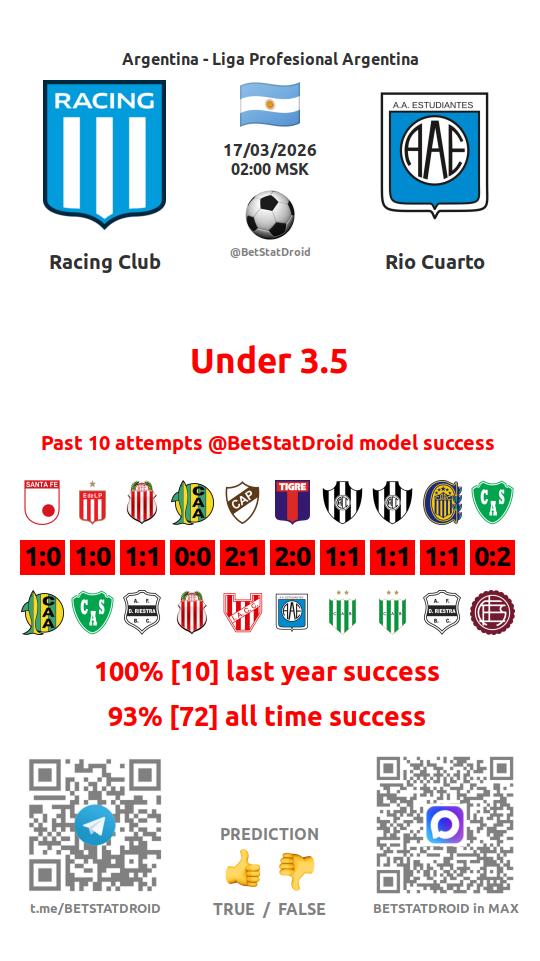 ✔ Rio Cuarto scores under 2,5 goals in each of 8 last games