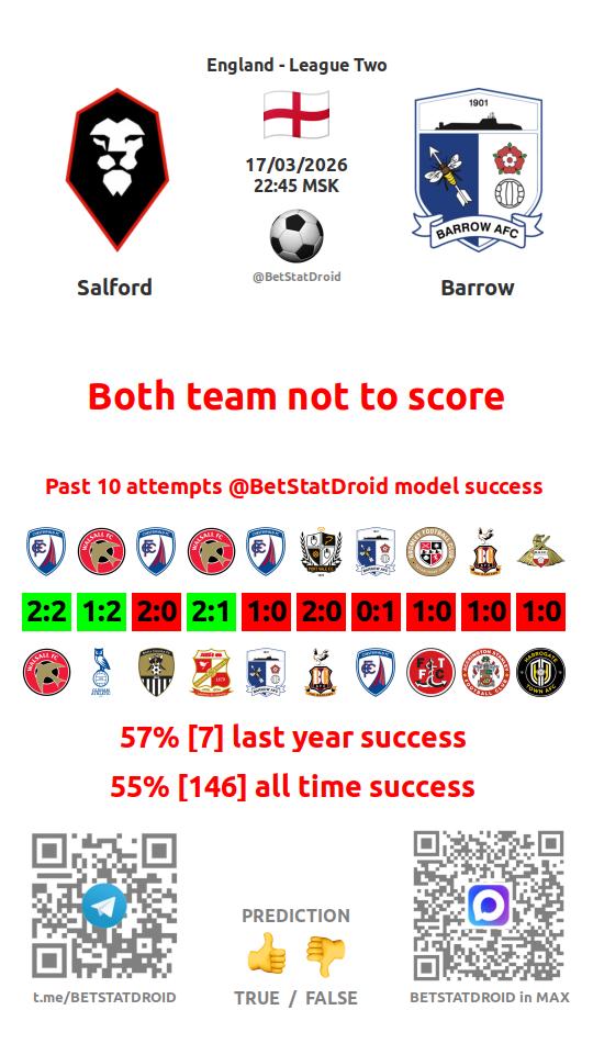 ✔ Salford scores under 2,5 goals in each of 12 last games
