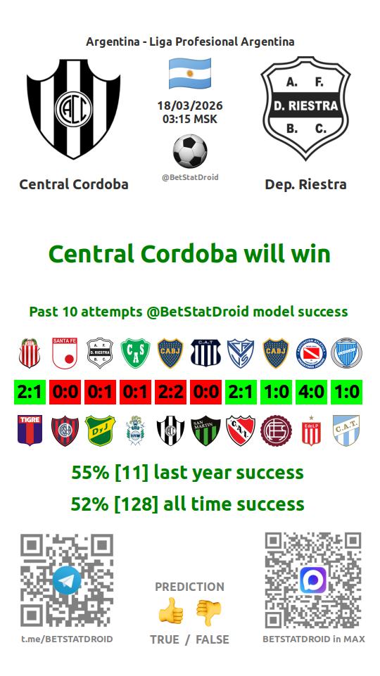 ✔ Central Cordoba lost under 2,5 goals in each of 17 last games