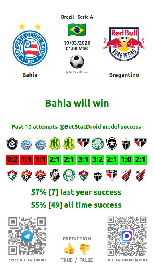 ✔ Bahia lost under 2,5 goals in each of 12 last games