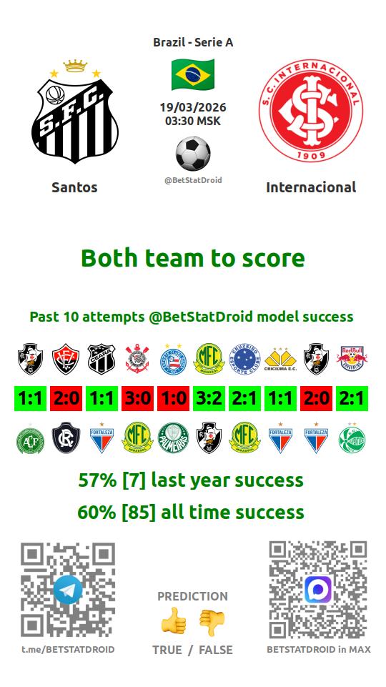 ✔ Santos scores under 1,5 goals in each of 7 last games