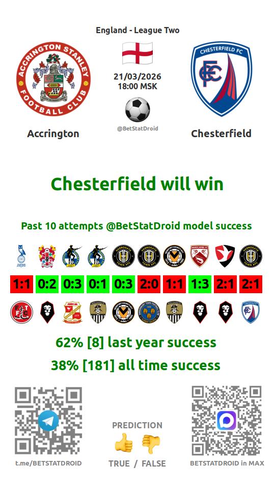 ✔ Chesterfield scores under 2,5 goals in each of 8 last games