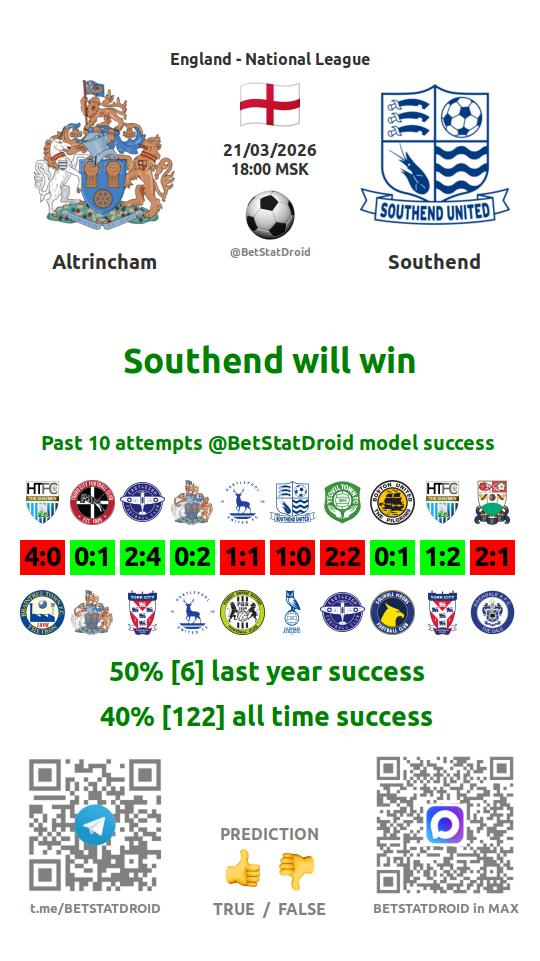 ✔ Altrincham lost under 1,5 goals in each of 6 last games