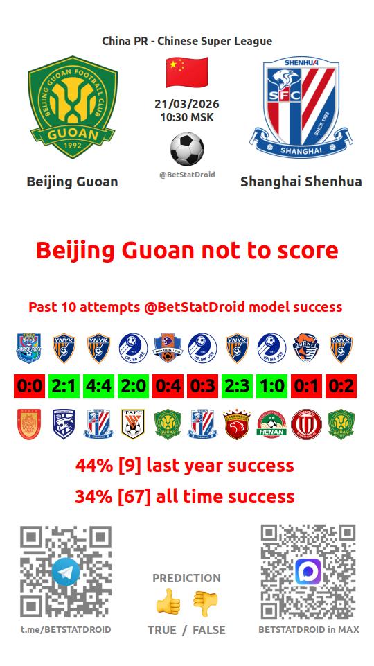 ✔ Beijing Guoan scores under 2,5 goals in each of 8 last games