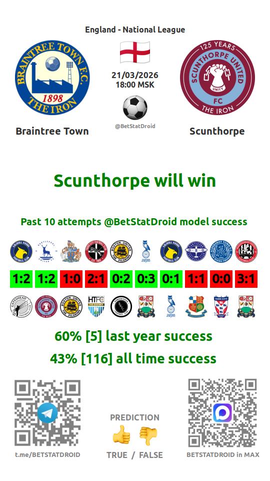 ✔ Braintree Town scores under 2,5 goals in each of 18 last games