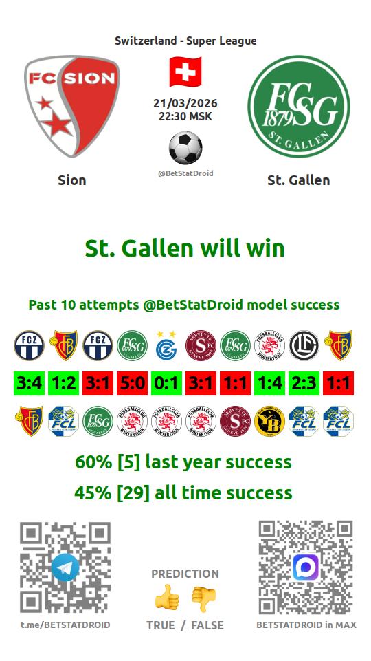 ✔ St. Gallen lost under 2,5 goals in each of 10 last games
