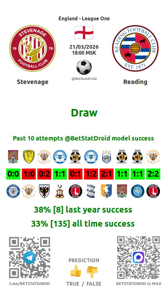 ✔ Stevenage scores under 2,5 goals in each of 21 last games