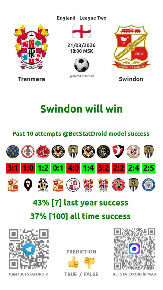 ✔ Swindon scores under 2,5 goals in each of 8 last games