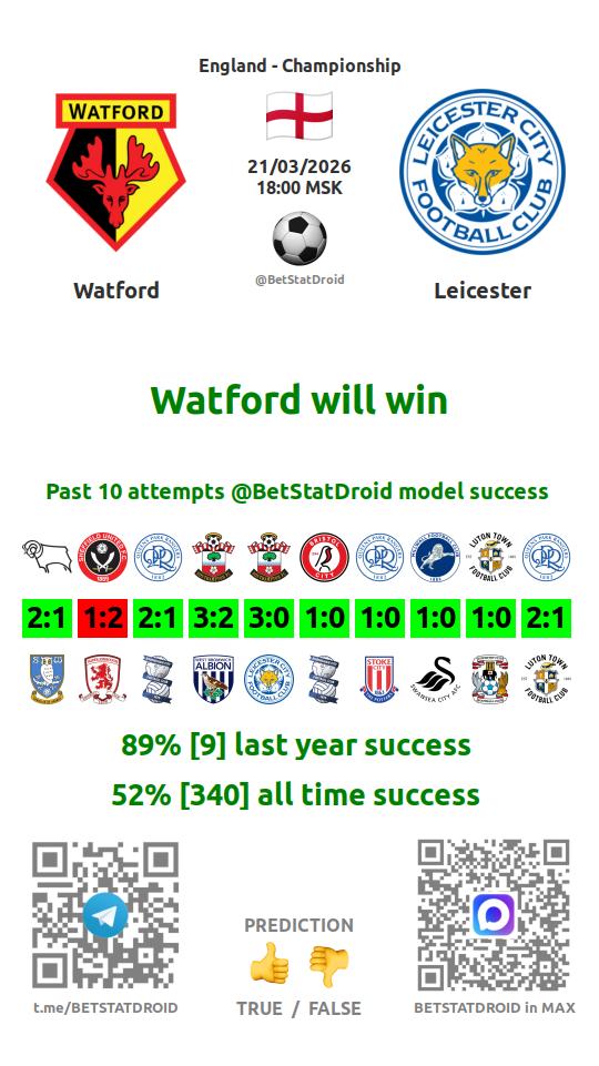 ✔ Watford lost under 2,5 goals in each of 26 last games