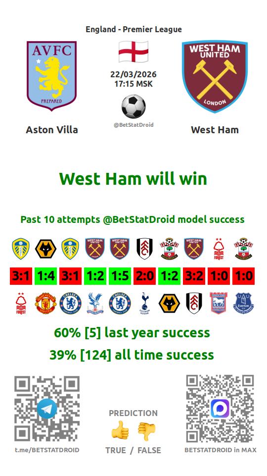 ✔ West Ham scores under 2,5 goals in each of 13 last games