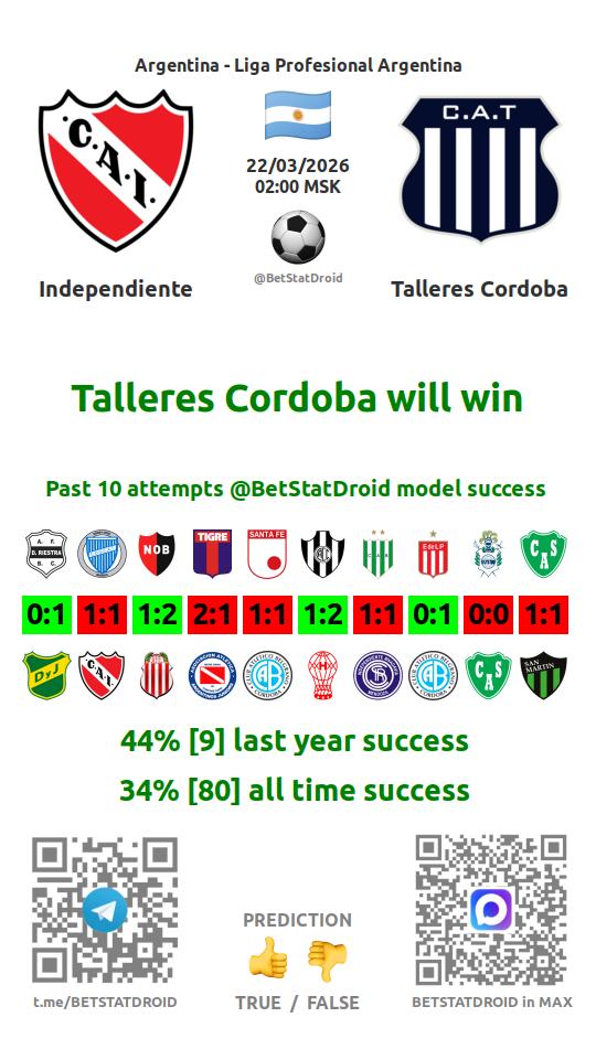 ✔ Talleres Cordoba lost under 2,5 goals in each of 22 last games