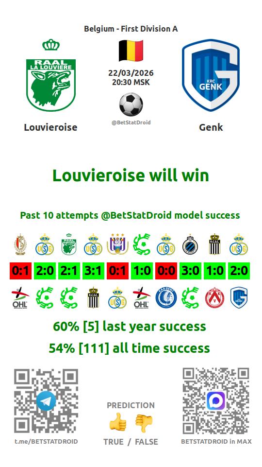 ✔ Louvieroise scores under 2,5 goals in each of 32 last games