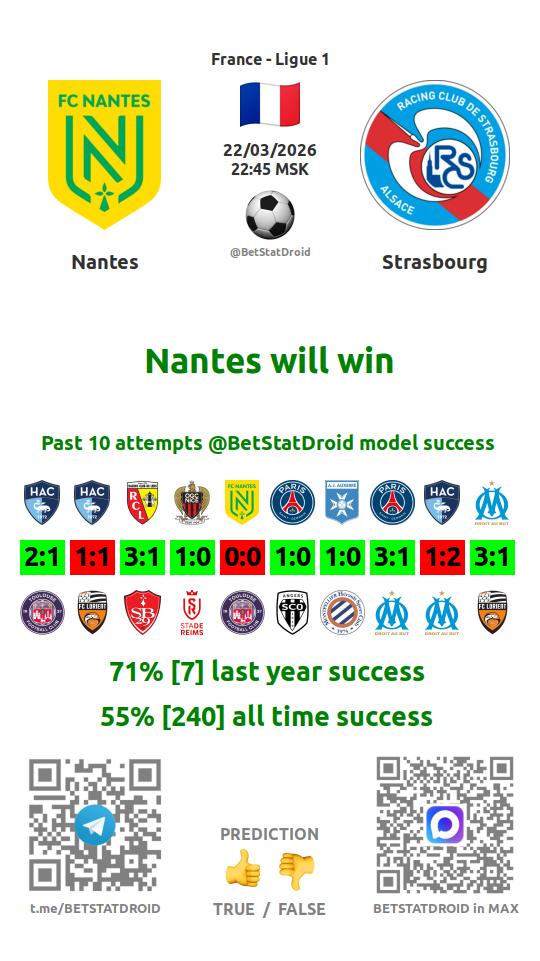 ✔ Nantes scores under 2,5 goals in each of 15 last games