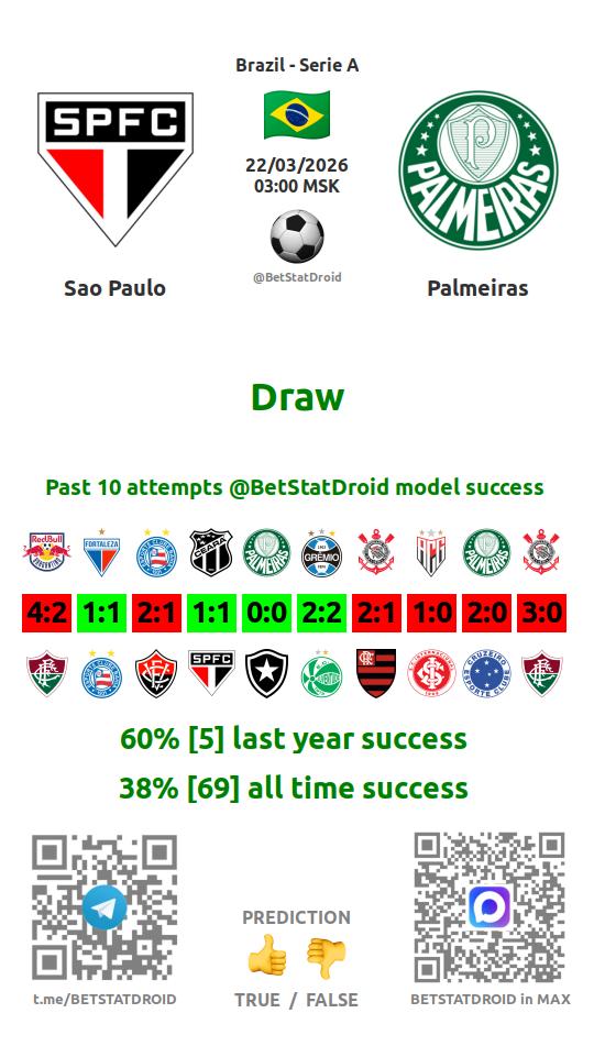 ✔ Sao Paulo scores under 2,5 goals in each of 11 last games