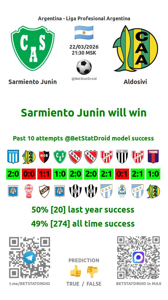 ✔ Sarmiento Junin scores under 2,5 goals in each of 37 last games