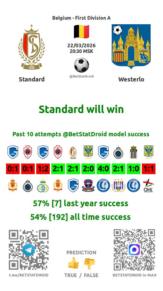 ✔ Standard lost under 1,5 goals in each of 5 last games