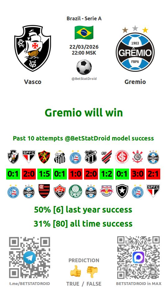✔ Vasco scores under 2,5 goals in each of 10 last games