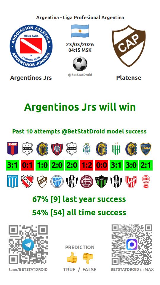 ✔ Argentinos Jrs scores under 2,5 goals in each of 15 last games