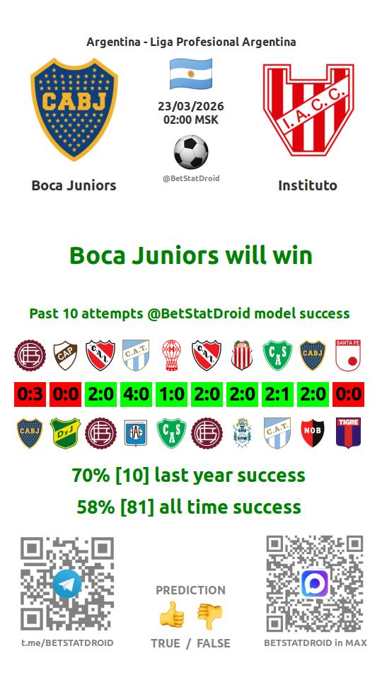 ✔ Instituto lost under 2,5 goals in each of 11 last games
