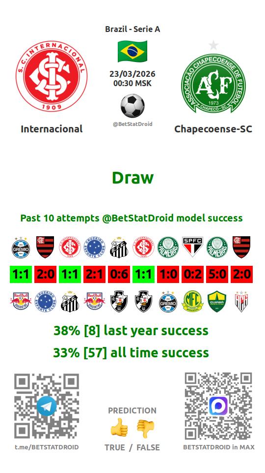 ✔ Chapecoense-SC scores under 2,5 goals in each of 10 last games