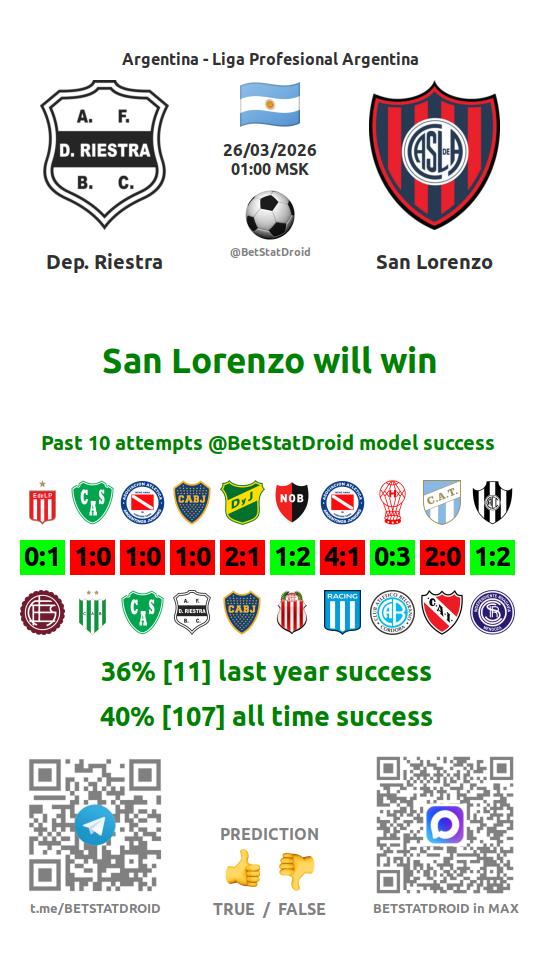 ✔ Dep. Riestra not scores in each of 3 last games